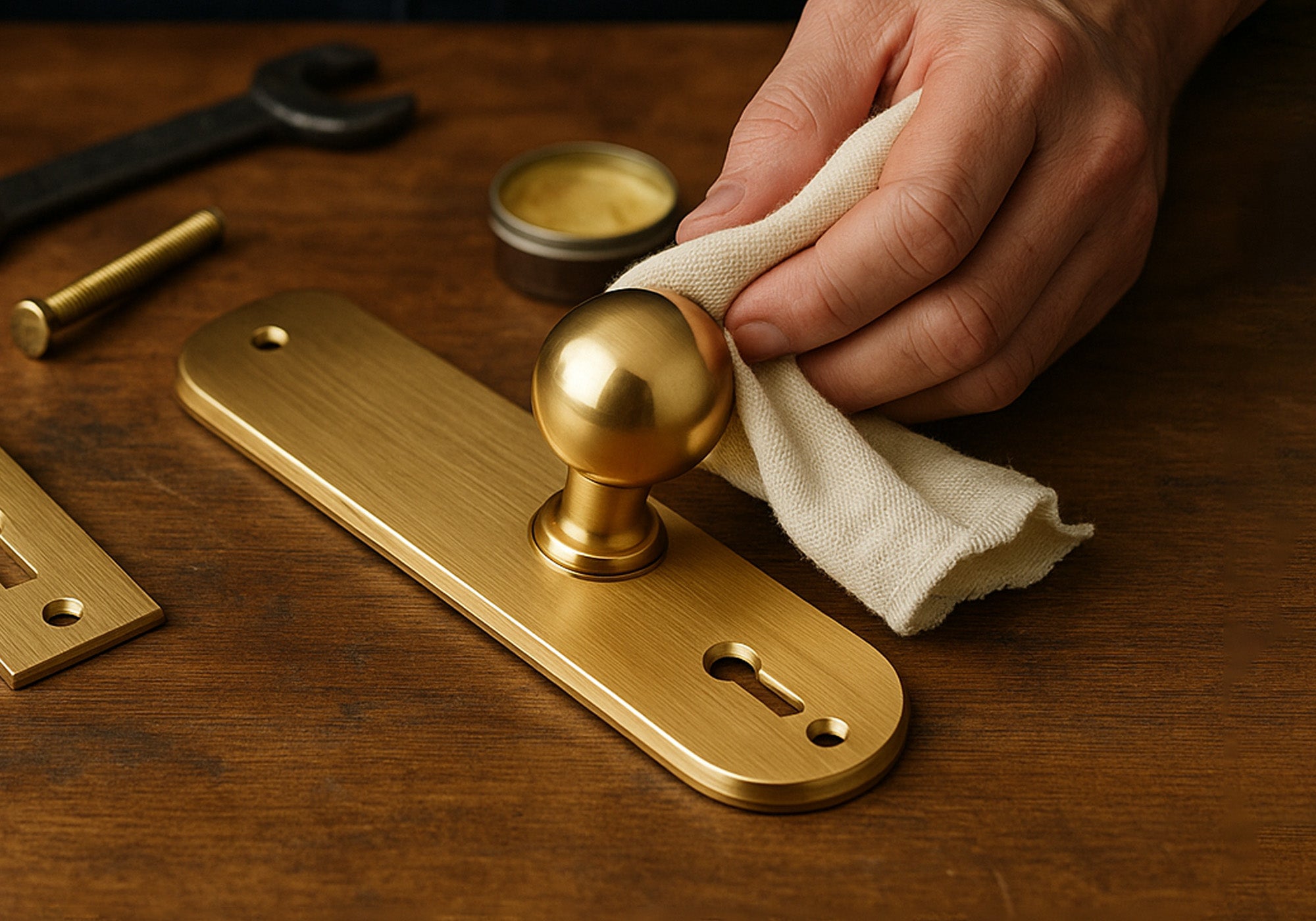 To maintain the natural beauty of your brass hardware: