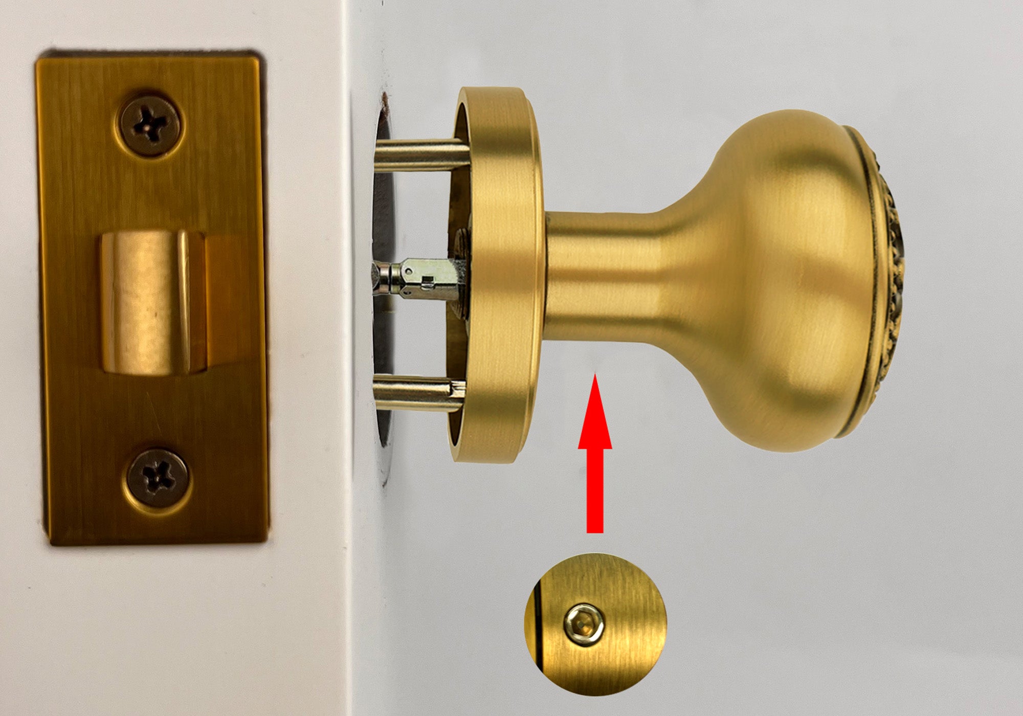 Before inserting the spindle, please use the included hex key to loosen the small screw at the bottom of the knob. Then push the spindle through and tighten the screw again to secure it. This step ensures smooth rotation and proper function of the knob.
